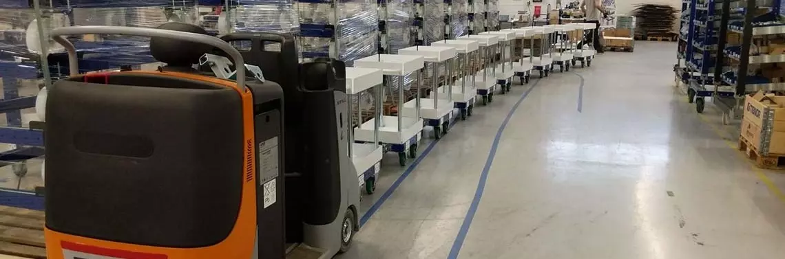 Wózki to typowy element każdej floty pojazdów transportu wewnętrznego. Coraz częściej jednak w miejscach, gdzie dotąd stosowano typowe widlaki, konkretnie tam, gdzie wykorzystywano je wyłącznie do transportu poziomego, teraz konkurencję dla nich stanowią zestawy transportowe. Specjaliści nie mają wątpliwości, że obok cyfryzacji i automatyzacji wzrost popularności ciągników, a tym samym zestawów transportowych (także autonomicznych), to jedno ze znaczących zjawisk, z jakim będziemy mieć do czynienia w logistyce w najbliższych latach.